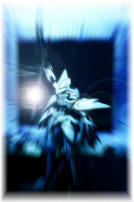 この画像のジュノーンは現在、存在しません。ある台風の日に窓を開 けっ放しにしていたら墜落、大破しました。遺骸を箱に放り込んでおい たのですが、最近覗いてみるとソフトビニールが悪いのか、アクリル 塗料が悪いのか、破片同士が融合(フュージョン)していました。
