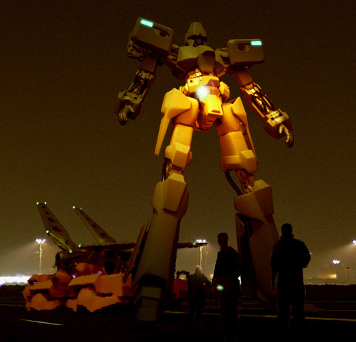 夜間、ドーリーより発進する先行量産型の試作騎。