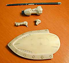 剣はキャスト(パイドルスピア砲身)削りだし&エポパテ。削りだしというか、120番ヤスリで豪快に成型!